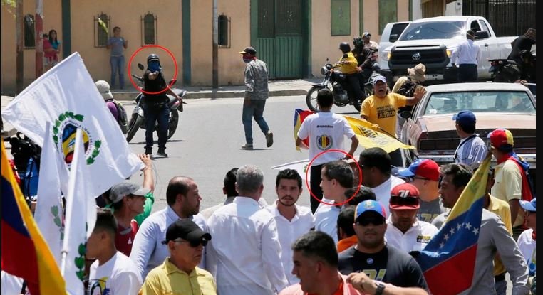 “¿Qué tan involucrado está Diosdado Cabello coordinando intentos de asesinato y violencia contra la democracia? La democracia no puede ser intimidada”, agrega el mensaje publicado por la Embajada norteamericana, que fue acompañado por una foto en la que se ve el momento en que un hombre armado apunta directamente contra Guaidó.