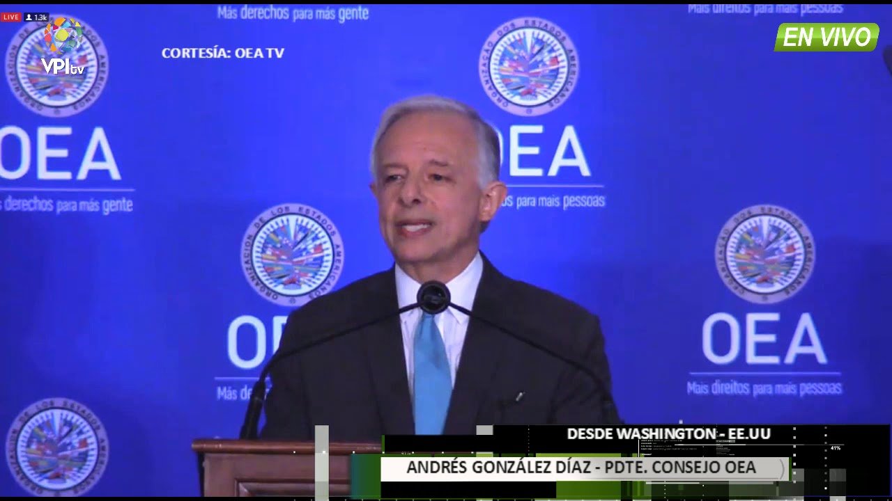 En declaraciones a la AFP, colombiano Andrés González Díaz, presidente del consejo permanente de la Organización de Estados Americanos explica…