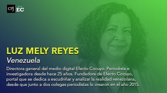Luz Mely Reyes, directora de la publicación Efecto Cocuyo, fue galardonada con Premio Internacional a la Libertad de Prensa 2018,…
